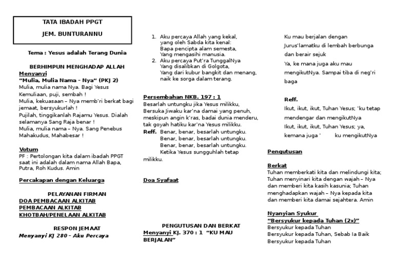 Tata ibadah hari minggu bentuk i persiapan panggilan beribadah koord. Semakin baikkah ibadah kita sikap sosial kita kepada sesama adakah perubahan yang lebih baik yang mampu kita promosikan untuk kehidupan.