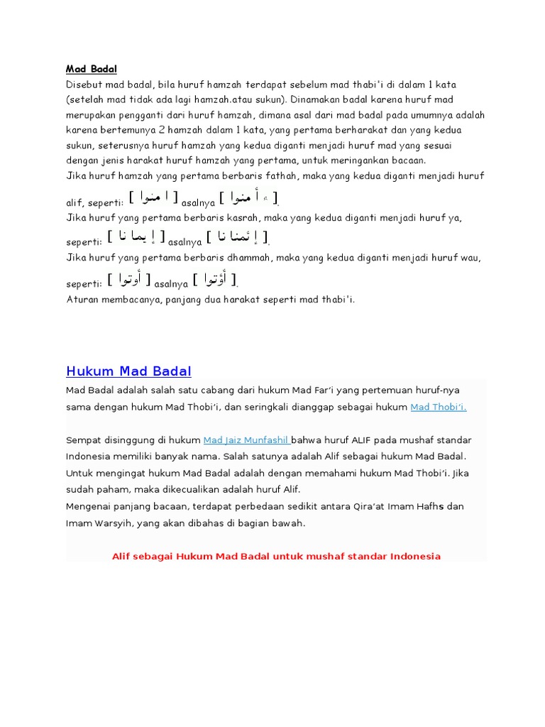 30 contoh mad badal dalam al quran beserta surat dan ayatnya minggu 23 september 2018 al quran contoh mad secara pengertian mad badal merupakan bacaan hamzah yang dipanjangkan. Sedangkan secara istilah mad mempunyai pengertian membaca panjang pada huruf yang ada pada al quran dikarenakan bertemu dengan beberapa huruf mad seperti hamzah wawu dan yak sedangkan panjangnya tergantung dari mad itu sendiri. Pengertian mad tamkin dan contohnya dalam al quran. Bacaan ini sendiri sangat banyak ditemui di dalam al quran. Pengertian mad tamkin tulisan kali ini merupakan kelanjutan dari pembagian mad fari yang berjumlah 15 yaitu membahas tentang apa itu mad tamkindi antara sobat pembaca yang baru belajar ilmu tajwid mungkin masih merasa asing dengan jenis mad yang satu ini hal itu karena hukum bacaan mad tamkin sangat jarang kita temukan pada ayat suci. Dalam artikel kali ini saya akan kembali membahas tentang salah satu bacaan mad dengan judul contoh mad silah qasirah beserta suratnya.