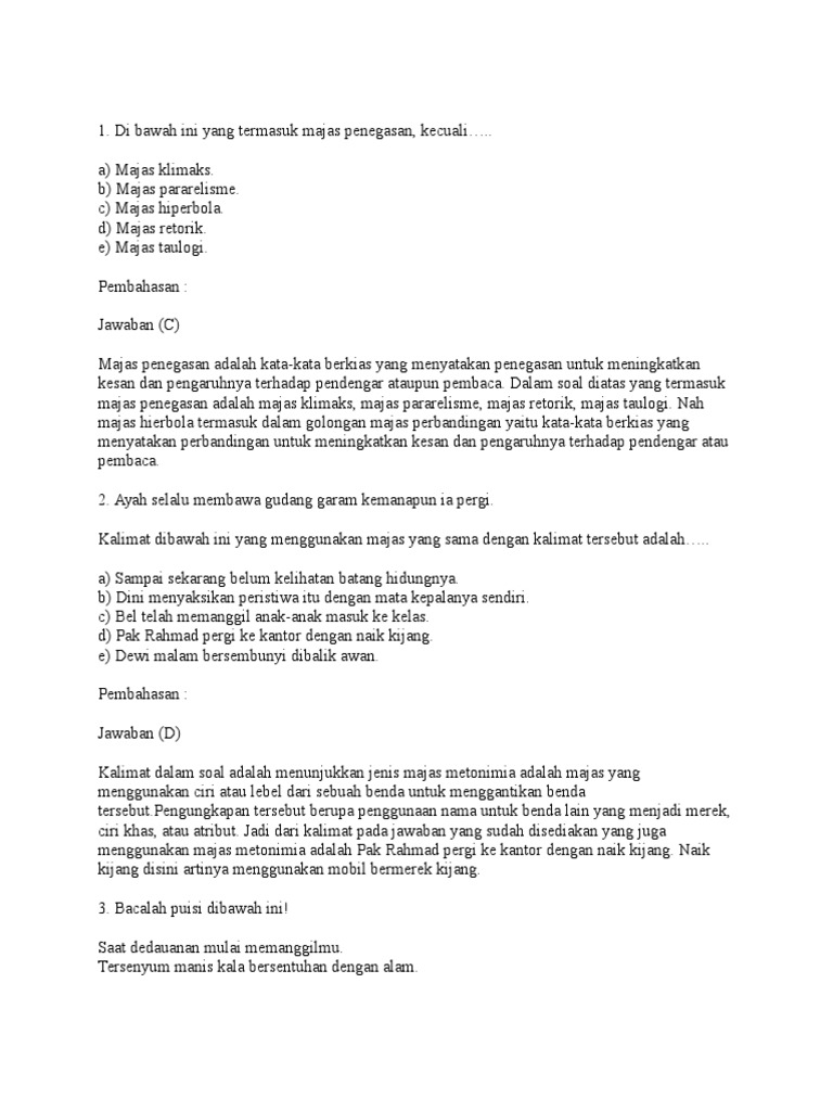 Majas antiklimaks di postingan doyan blog kali ini akan membahas mengenai pengertian dan contoh majas antiklimaks. Mulai dari bapaknya kakaknya sampai anak yang bungsunya mereka semua adalah pecinta sepak bola. Jika di dalam majas klimaks menggunakan urutan atau tingkatan dari yang terkecil ke tingkatan yang paling tinggi. Contoh majas antiklimaks. Contoh majas antiklimaks setelah mengulas informasi tentang majas klimaks pada artikel sebelumnya di kesempatan kali ini kita akan membahas tentang kebalikan majas tersebut. Ya jika majas klimaks merupakan gaya bahasa yang merunutkan kata kata dalam satu hirarki mulai dari tingkat yang terendah ke tingkat yang tertinggi maka majas antiklimaks.