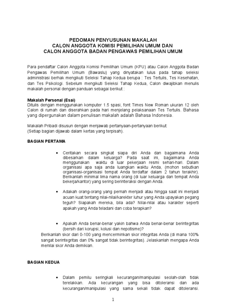 Contoh makalah calon anggota panwaslu. Pengumuman calon anggota badan pengawas pemilihan umum provinsi kalimantan utara terpilih masa jabatan 2020 2025 ditulis oleh admin pada selasa 28 april 2020 1331 wib berikut adalah nama calon anggota bawaslu provinsi kalimantan utara terpilih masa jabatan 2020 2025. Jawab pertanyaan masing masing tema maksimal dalam 2 halaman kertas kwarto a4 spasi 1. Dalam makalah ini saya juga ingin menyampaikan pengalaman saya ketika menjadi pimpinan pmii kutai timur yang menunjukkan tingkat independensi saya. Related posts to contoh makalah calon anggota panwaslu contoh makalah calon anggota panwaslu 2018 04 28t131900 0700 rating. Academiaedu is a platform for academics to share research papers. Makalah ini dibuat merupakan persyaratan untuk menjadi anggota panwaslu kabupaten labuhanbatu selatan pada tahapan akhir dengan menguji kelayakan dan kepatutan sebagai calon anggota semoga bermanfaat dan menjadi acuan bagi penulis maupun bagi yang membacanya dalam melaksanakan pengawasan dalam kepemiluan khususnya di daerah.