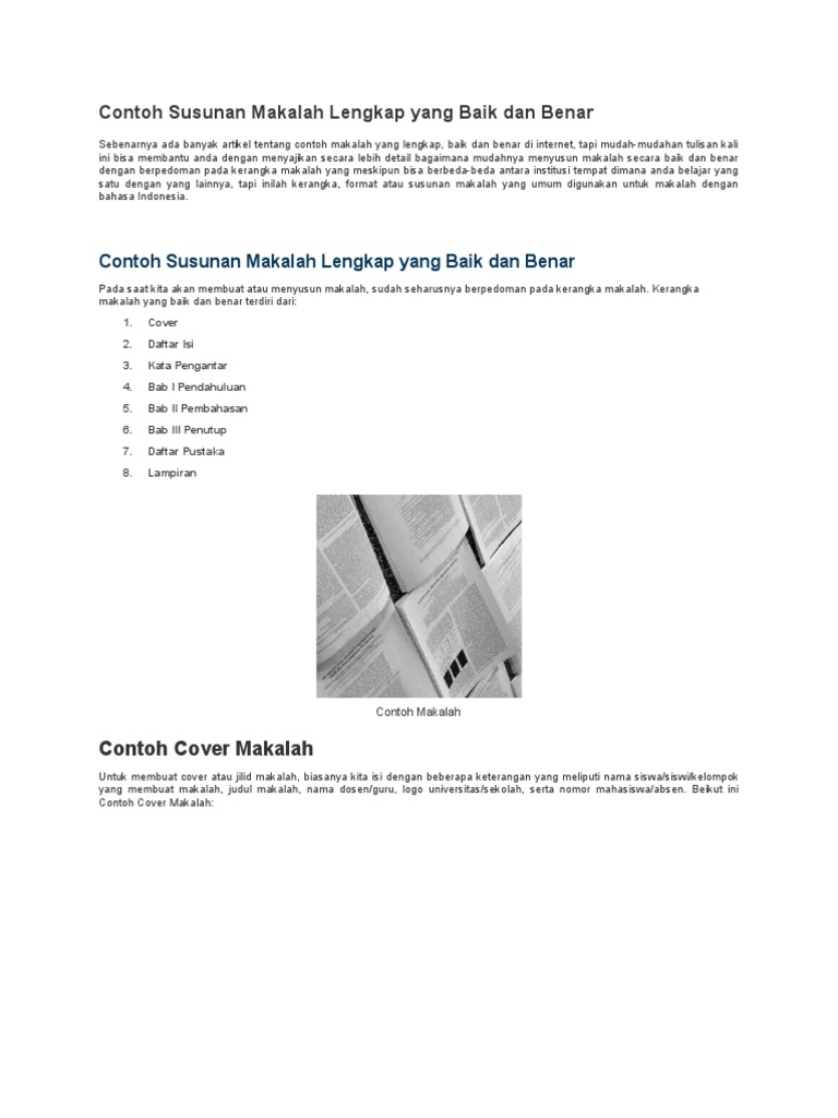 Contoh makalah mahasiswa lengkap. Sebenarnya ada banyak artikel tentang contoh makalah yang lengkap baik dan benar di internet tapi mudah mudahan tulisan kali ini bisa membantu anda dengan menyajikan secara lebih detail bagaimana mudahnya menyusun makalah secara baik dan benar dengan berpedoman pada kerangka makalah yang meskipun bisa berbeda beda antara institusi tempat dimana anda belajar yang satu dengan yang lainnya. Contoh makalah mahasiswa lengkap. Makalah merupakan makanan sehari hari bagi para pelajar maupun mahasiswa. Alamat penulis memuat nama instansi atau lembaga tempat penulis bekerja atau menempuh jenjang studi. Susunan makalah yang benar sumber. Artikel berisi contoh makalah lengkap contoh cover makalah contoh kata pengantar makalah contoh daftar isi makalah dan seterusnya yang dikupas secara lengkap.