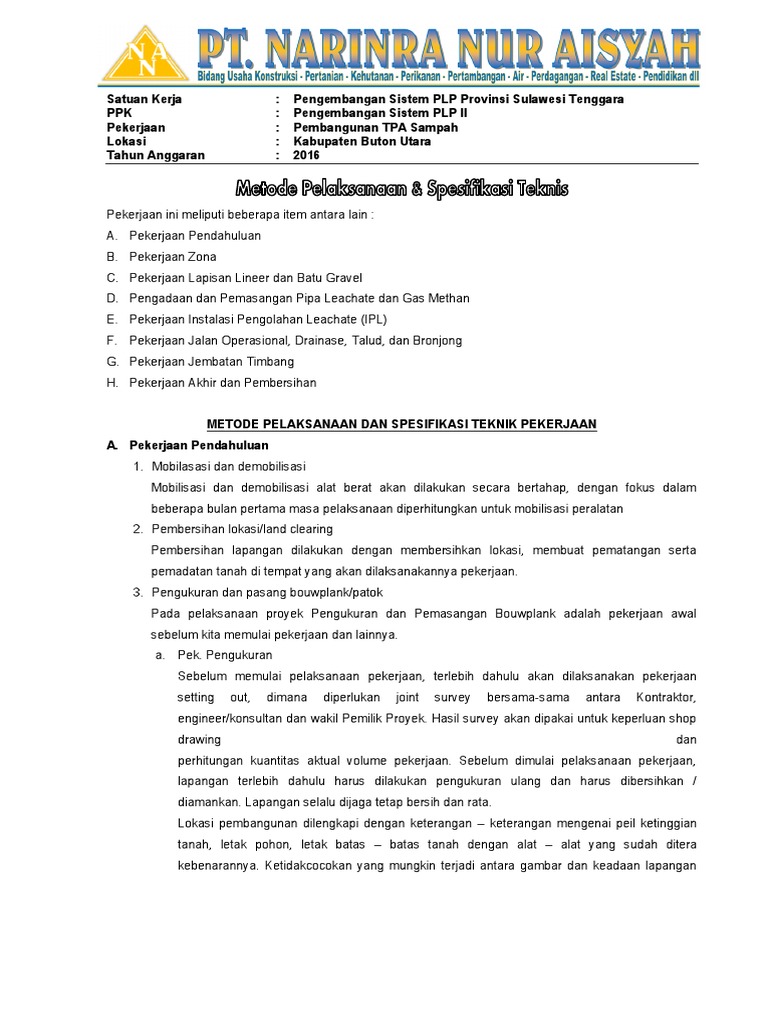 Contoh Metode Pelaksanaan Pekerjaan Proyek Pengadaan Barang
