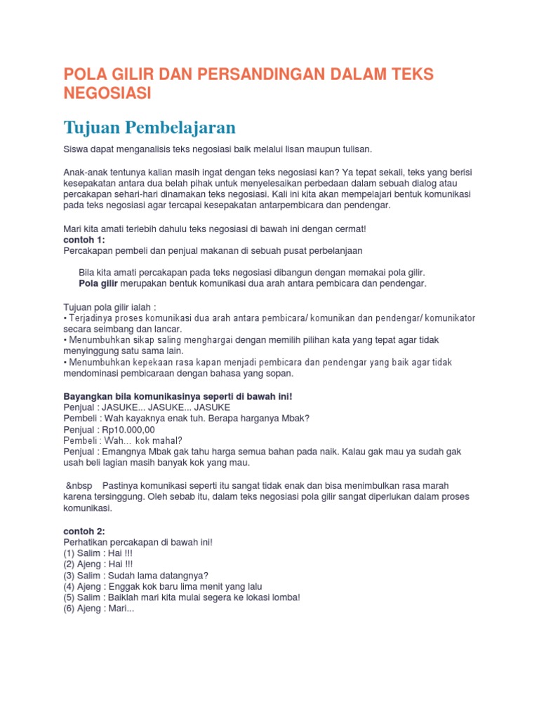 Teks negosiasi bernegosiasi sudah sering dijumpai pada kehidupan sehari hari. Mari dek buahnya manis dan segar silakan dipilih. Jadi semoga materi ini bisa bermanfaat untuk teman teman yang sma kelas x. Berikut ini adalah contoh penerapan negosiasi yang ada lingkungan sekitar kita. Negosiasi merupakan suatu cara untuk mencapai mufakat atau persamaan pendapat. Nah disini yuksinauid akan memberikan contoh teks negosiasi dengan strukturnya.