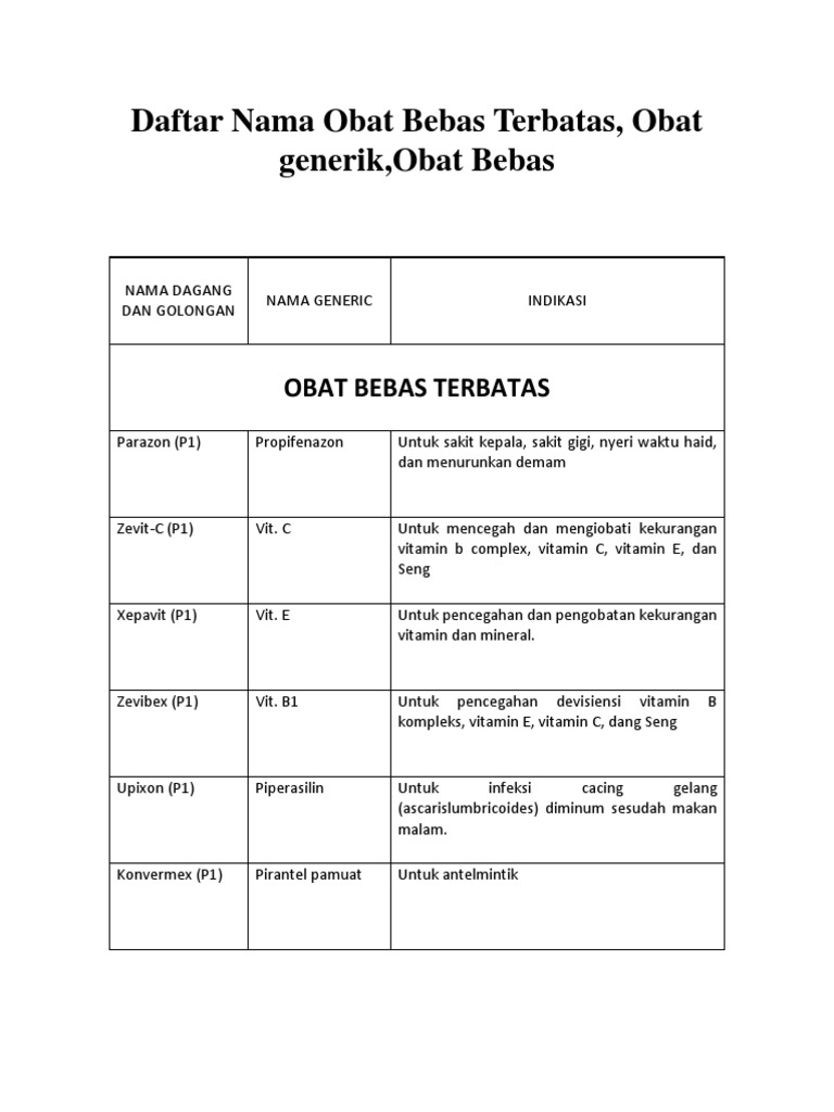Obat bebas terbatas adalah obat yang sebenarnya termasuk obat keras tetapi masih dapat dijual atau dibeli bebas tanpa resep dokter dan disertai dengan tanda peringatan. Untuk mencegah dan mengiobati kekurangan vitamin b complex vitamin c vitamin e dan seng. Contoh obat bebas terbatas p1 p6 macam macam obat keras adapun daftar obat keras yang dibedakan menurut golongan dari p1 hingga p6 antara lain adalah. Obat bebas terbatas adalah obat yang sebenarnya termasuk obat keras tetapi masih dapat dijual atau dibeli bebas tanpa resep dokter dan disertai dengan tanda peringatan. Sebelumnya golongan obat ini disebut dengan. Obat bebas terbatas dapat diperoleh tanpa resep dokter di apotek dan toko obat terdaftar.