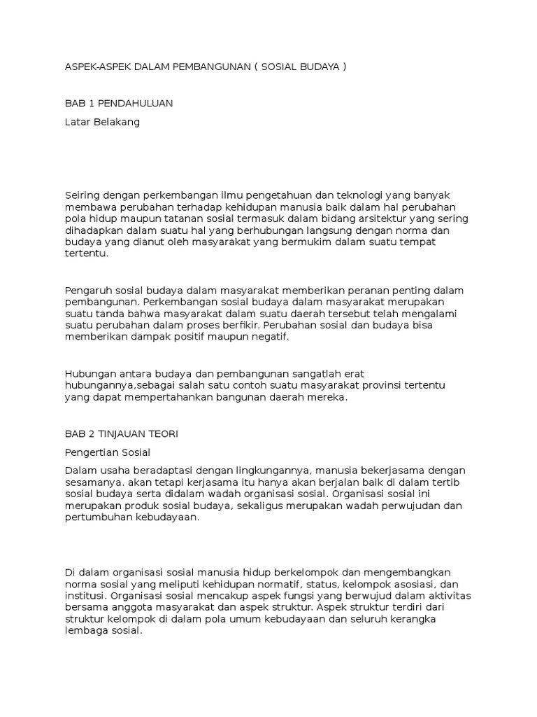 Pembangunan sosial budaya yang bermartabat. Contoh makalah pembangunan ekonomi daerah. Oiya kalian juga bisa baca mengenai bentuk dan dampak perubahan sosial budaya untuk lebih memahami contoh contoh perubahannya jika sudah berikut ini 18 contoh perubahan sosial budaya yang sudah kami kumpulkan. Pembangunan adalah proses perubahan yang direncanakan untuk memperbaiki berbagai aspek kehidupan masyarakat. Tikson 2005 menurut deddy t. 6 tujuan pembangunan sosial budaya bagi masyarakat sangat berpengaruh dalam perkembangan kehidupan masyarakat karena salah satu tujuannya adalah untuk meningkatkan kesejahteraan masyarakat bersama.