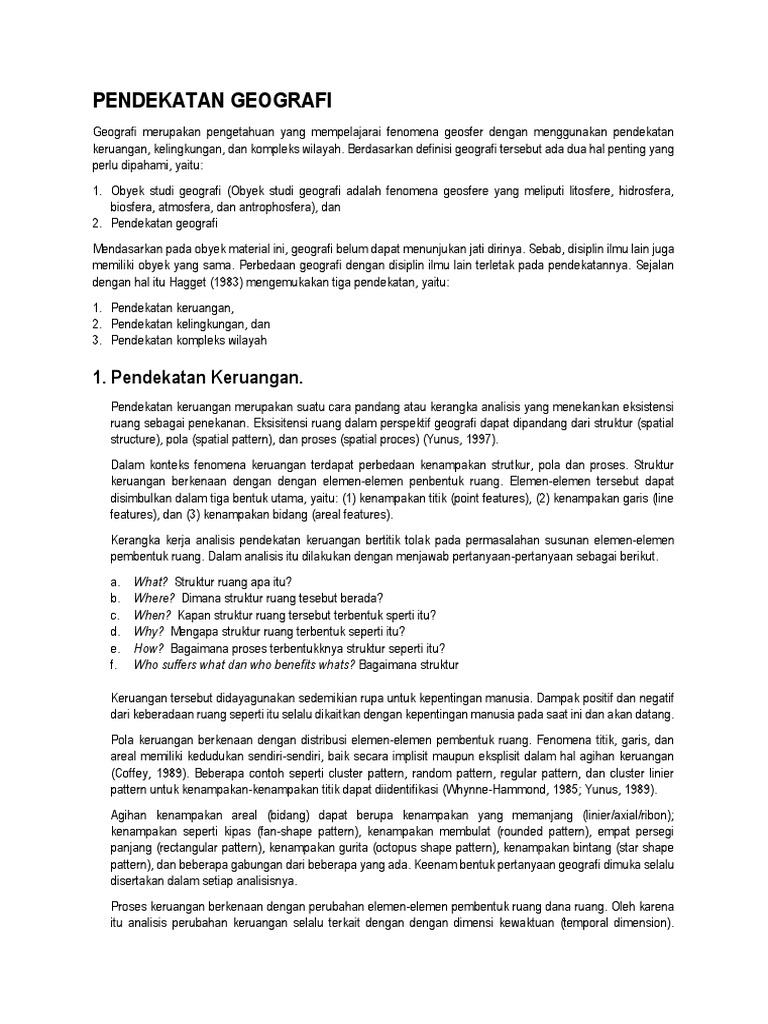 Pendekatan Penelitian Atau Objek Studi Geografi Manakah
