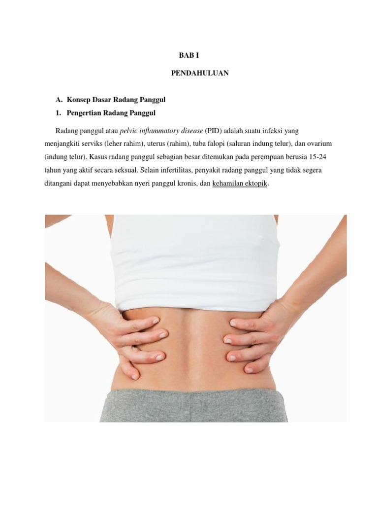 Infeksi menular seksual merupakan salah satu penyebab dari radang panggul. Pelvic inflammatory disease adalah infeksi pada alat genital atas. Radang panggul atau pelvic inflammatory disease pid adalah infeksi pada organ reproduksi wanita seperti serviks rahim dan ovarium. Proses penyakitnya dapat meliputi endometrium tubafalopii ovarium miometrium parametria dan peritonium panggul. Berikut ini adalah contoh jurnal penyakit kulit yang merupakan kumpulan file dari berbagi sumber jurnal tentang makalah penyakit radang panggul yang bisa bapakibu gunakan dan diunduh secara gratis dengan menekan tombol download biru dibawah ini. Radang panggul juga mampu menjadi salah satu penyebab pingsan mendadak.