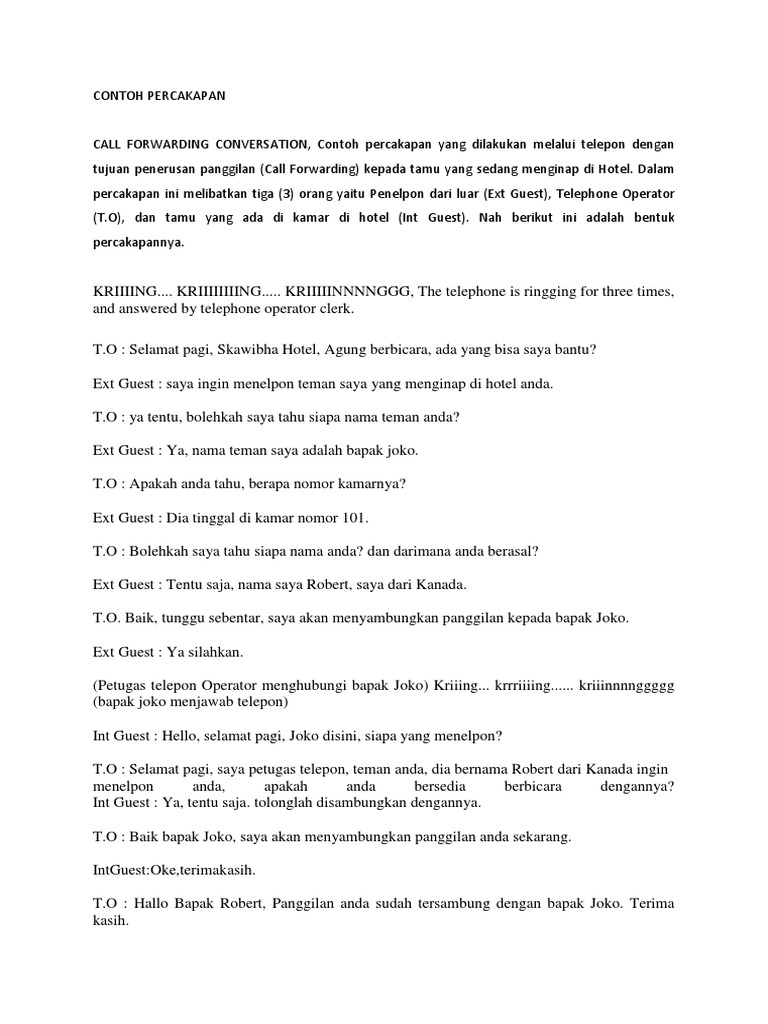 Contoh percakapan di telepon. Berbeda dengan contoh di atas yang hanya melibatkan 2 orang percakapan di bawah ini terdiri dari 3 orang yang berperan di dalamnya. Kali ini fokusnya adalah percakapan bahasa inggris 2 orang singkat dan artinya di telepon. Contoh percakapan melalui telepon yang baik dan benar oleh berpendidikan diposting pada 2 juni 2019. Untuk anda yang sedang mencari dan membutuhkan percakapan sekretaris dalam telepon berikut ini saya berikan dalam bahasa indonesia dan bahasa inggris. Speaking dengan percakapan bahasa inggris 2 orang singkat dan artinya di telepon. Tadi sore ketika belajar.