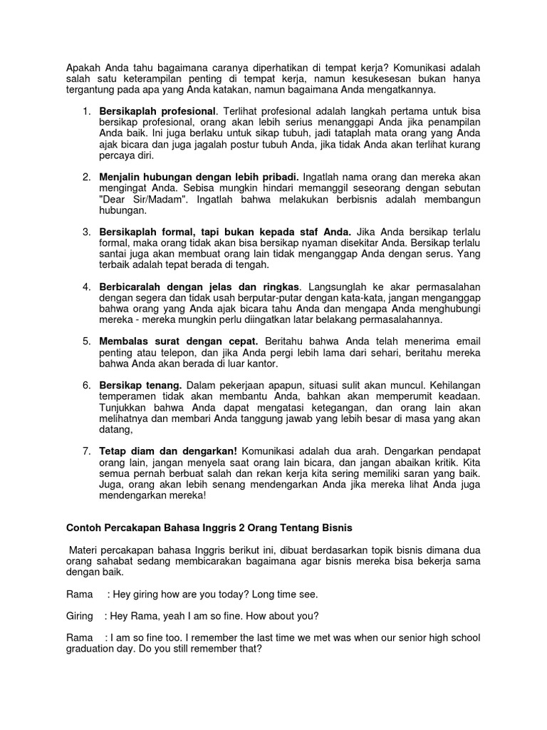 Contoh percakapan telepon tentang bisnis. Ran pr bahasa indonesia kamu sudah kamu kerjakan belum. Contoh percakapan menawarkan produk. Bagaimana kalian melakukan sebuah percakapan bahasa inggris tentang membuat janji bisnis melalui telepon. Contoh percakapan dalam bahasa inggris berikut ini adalah membahas tentang rencana liburan ke singapur antara nita dan glen. Yaitu dengan naik pesawat terbang dengan terlebih dahulu memesan tiketnya di travel agent. Ketika melakukan percakapan ada 2 hal yang tidak dapat dipisahkan yakni grammar dan tenseskedua hal tersebut dilperlukan dalam bisnis supaya lawan bicara mengerti maksud dari tujuan kita ketika melakukan percakapan dan agar tidak terjadi kesalahpahaman.