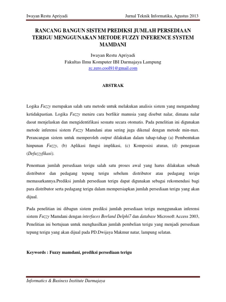 Pembentukan himpunan fuzzy pada metode mamdani baik variabel input maupun variabel output dibagi. Pencetus gagasan logika fuzzy adalah prof. Contoh soal metode mamdani. Dalam kondisi yang nyata beberapa aspek dalam dunia nyata selalu atau biasanya berada diluar model matematis dan bersifat inexact. Zadeh 1965 dari california universitypada prinsipnya himpunan fuzzy adalah perluasan himpunan crisp yaitu himpunan yang. 2 aplikasi fungsi implikasi aturan.