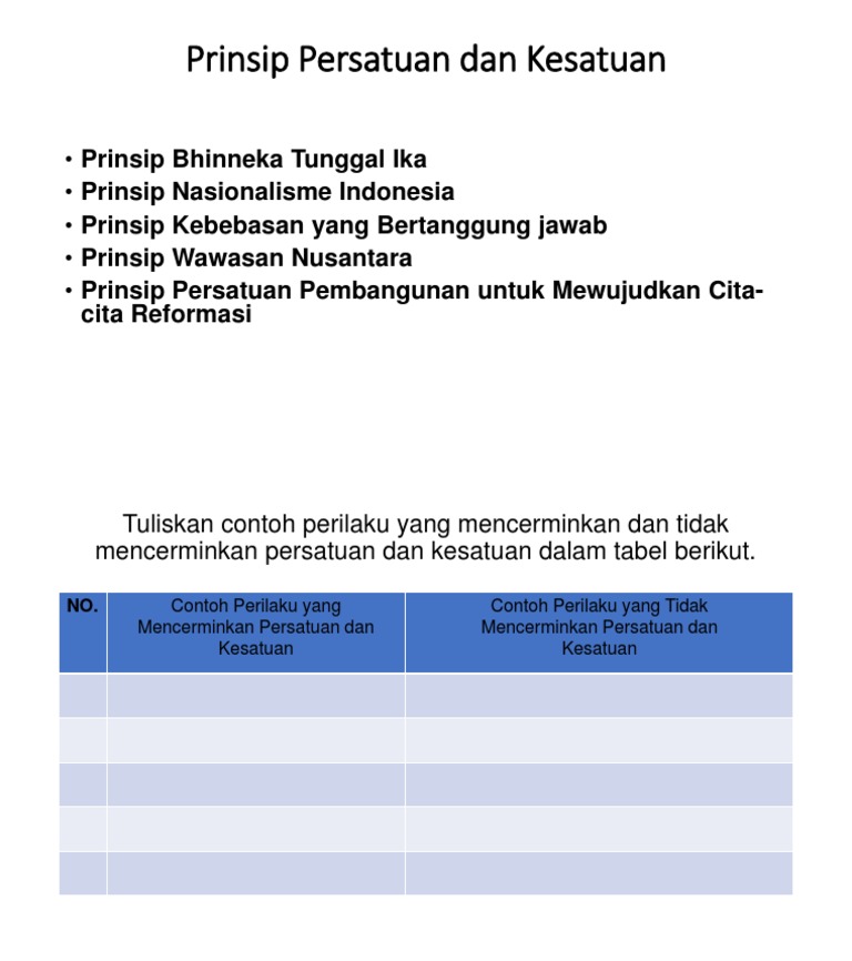 Contoh perilaku yang mencerminkan persatuan dan kesatuan. 10 contoh sikap menunjukkan persatuan dan kesatuan juga yang tidak. Tentunya kita memerlukan sebuah negara berdaulat yang didukung oleh masyarakatnya dan inilah mengapa diperlukan beberapa jenis sikap terpuji untuk memeprtahankan nkri tersebut seperti cara mewujudkan bela negara. Contoh kegiatan yang mencerminkan persatuan dan kesatuan di lingkungan sekolah pada kesempatan yang baik ini kita akan belajar tentang contoh persatuan dan kesatuan dilingkungan sekolahsemangat persatuan dalam bernegara merupakan pengikat suatu negara untuk dapat berdiri tegak selama lamanya. Bersama sama membersihkan lingkungan rumah sehingga rumah jadi bersih dan nyaman. Perilaku yang mencerminkan perwujudan persatuan dan kesatuan dalam keluarga sekolah bermasyarakat berbangsa dan bernegara antara lain sebagai berikut. Bekerja sama dalam menjaga keamanan lingkungan.