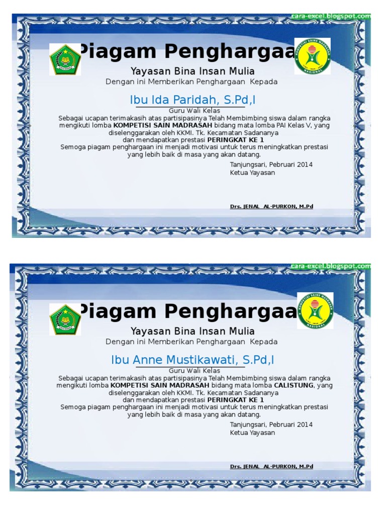 Contoh piagam penghargaan siswa berprestasi kemena. Selain itu piagam hadiah juga diberikan kepada kelas paling bersih. Aplikasi pembuatan piagam penghargaan siswa berprestasi ini ditujukan bagi siapa saja yang membutuhkan informasi pendidikan aplikasi dan administrasi untuk digunakan sebagai referensi sesuai keperluan baik itu di lingkungan kelas dan sekolah ataupun umum untuk guru bahkan operator sekolah dan tenaga usaha tu. Adapun piagam penghargaan juga diberikan kepada siswa yang prestasinya paling jelek.