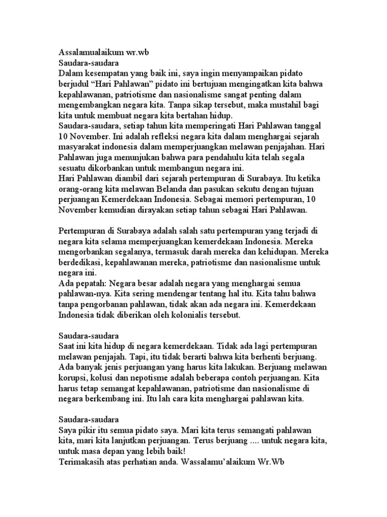 Text 2 pidato tentang hari pahlawan. Download pidato hari pahlawan 2017 pidato mk upacara hari pahlawan. Pidato natal papi. Pidato kartini syntha. Pada kesempatan yang baik ini marilah kita bersyukur kepada allah swt atas limpahan rahmat nimat dan taufiq serta hidayah nya yang telah diberikan kepada kita sehingga pada kesempatan hari ini kita dapat berkumpul dan berjumpa pada acara peringatan hari pahlawan 10 november.