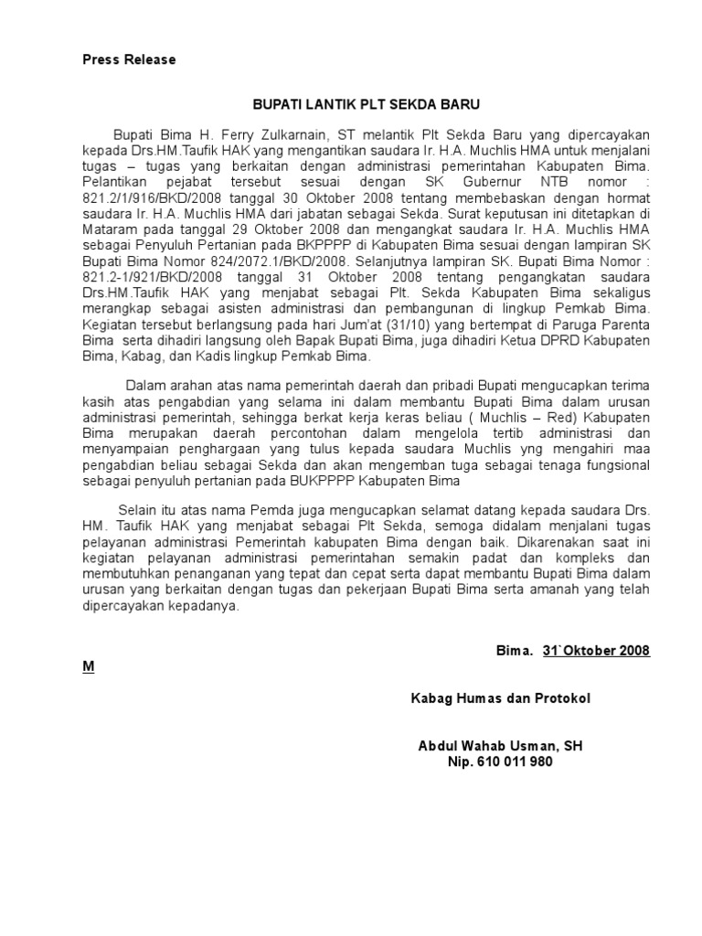 Contoh Press Release
