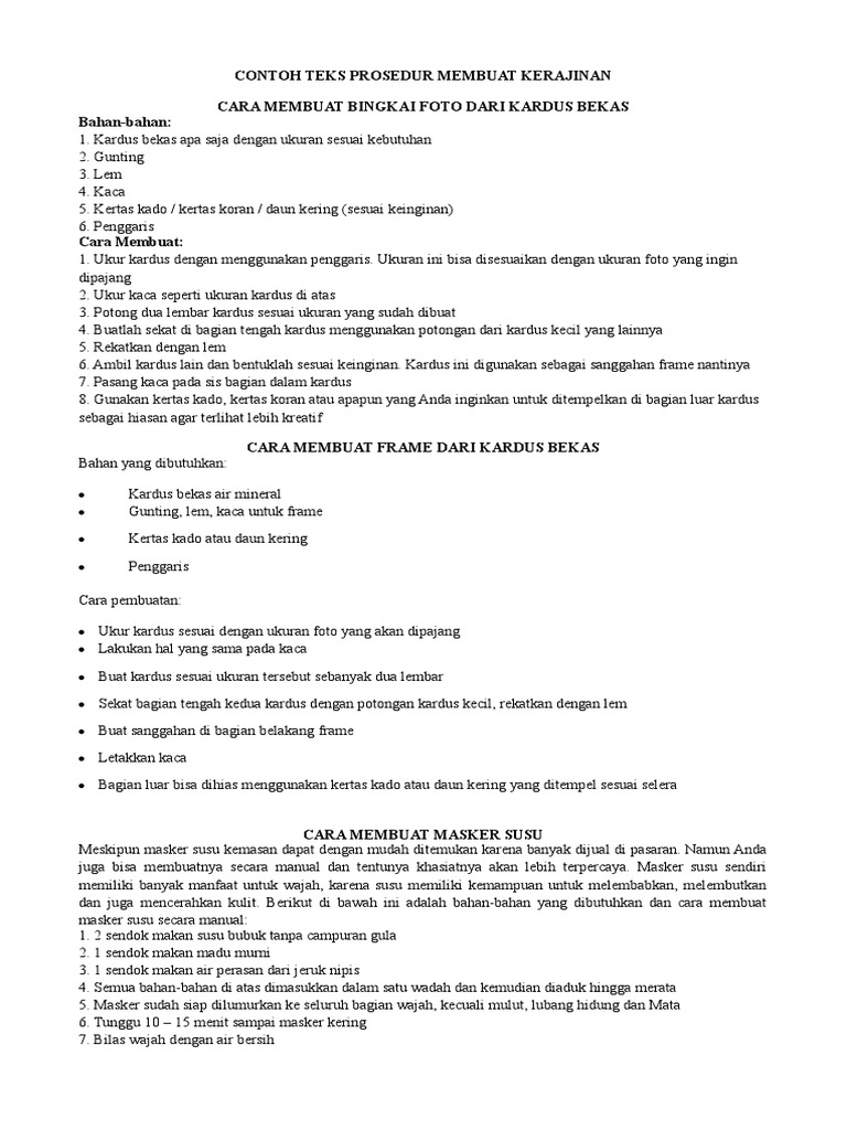 Contoh procedure text makanan. Contoh soal dan jawaban procedure text by mr min posted on september 10 2015 berikut adalah contoh soal dan jawaban procedure teks dalam membuat makanan dan membuat cincin dari kain flannel. Banyak sekali contoh contoh procedure text yang sering kita gunakan dalam kehidupan sehari hari. Contoh procedure text beserta artinya kali ini adalah contoh procedure text selain makanan yaitu contoh procedure text cara memakai handphone hp berikut ini adalah procedure text how to use handphone prosedur teks cara menggunakan handphone dalam bahasa inggris dan artinya. Contoh procedure text makanan bukan hanya minuman kita juga bisa menemui banyak teks prosedur membuat makanan. Nah itulah penjelasan mengenai contoh procedure text mulai dari pengertian struktur dan unsur kebahasaan. Berikut ini adalah contoh procedure text mulai dari makanan minuman snack cake benda kerajinan tangan perilaku manusia hingga contoh soal.