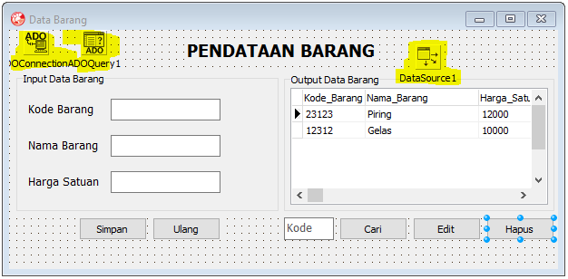 Contoh program delphi 7 menggunakan database. Program ini masih sangat sederhana sekali jadi mohon maaf bila masih ada banyak kekurangannya. Sekian contoh contoh program delphi yang bisa kami berikan pada artikel kali ini. Pada contoh pemrograman dengan delphi sebagai bahan komparatifperbandingan dengan visual basic atau sebagai bahan pelajaran bagi anda yang memang kebetulan sedang mempelajari delphi07 sama sama menggunakan koneksi data ado dan bahasa sql sintax query language. Jika anda hendak melihat beberapa contoh bahasa pemrogaman yang lain simak contoh program python yang ada di situs ini. Access dengan delphi 7. Nah disini saya hanya akan menunjukkan bagaimana pembuatan data module dan pembuatan database dengan singkat dan penggunaan program yang saya buat.