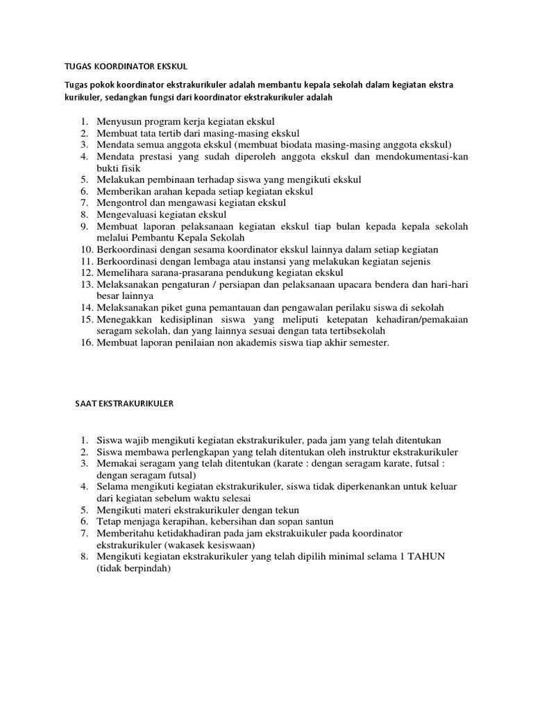 Download contoh program kerja dan jadwal kegiatan ekstrakulikuler sekolah format microsoft excel. Berkas sekolah kumpulan program kerja ekstrakulikuler siswa smpmts smasmkma lengkap dengan jadwal kegiatan ini kami bagika secara gratis untuk bapakibu pembina ataupun ketua pramuka paskibara pmr pks dan osis supaya mengetahui cara membuat program kerja yang baik dan benar. Dibawah ini ada salah satu contoh kegiatan futsal dimana dalam kegiatan tersebut pembina menyusun program kerja sebagai. Kegiatan ekstrakulikuler diharapkan dapat mewadahi minat siswa untuk mengasah bakatnya sehingga bisa terus berpikir positif. Adapun beberapa contoh proker yang telah admin bagikan terlebih dahulu untuk cabang olahraga lain diantaranya proker ekskul bulu tangkis ekskul bola voli dan program ekskul pencak silat. Visi misi dan tujuan sekolah.