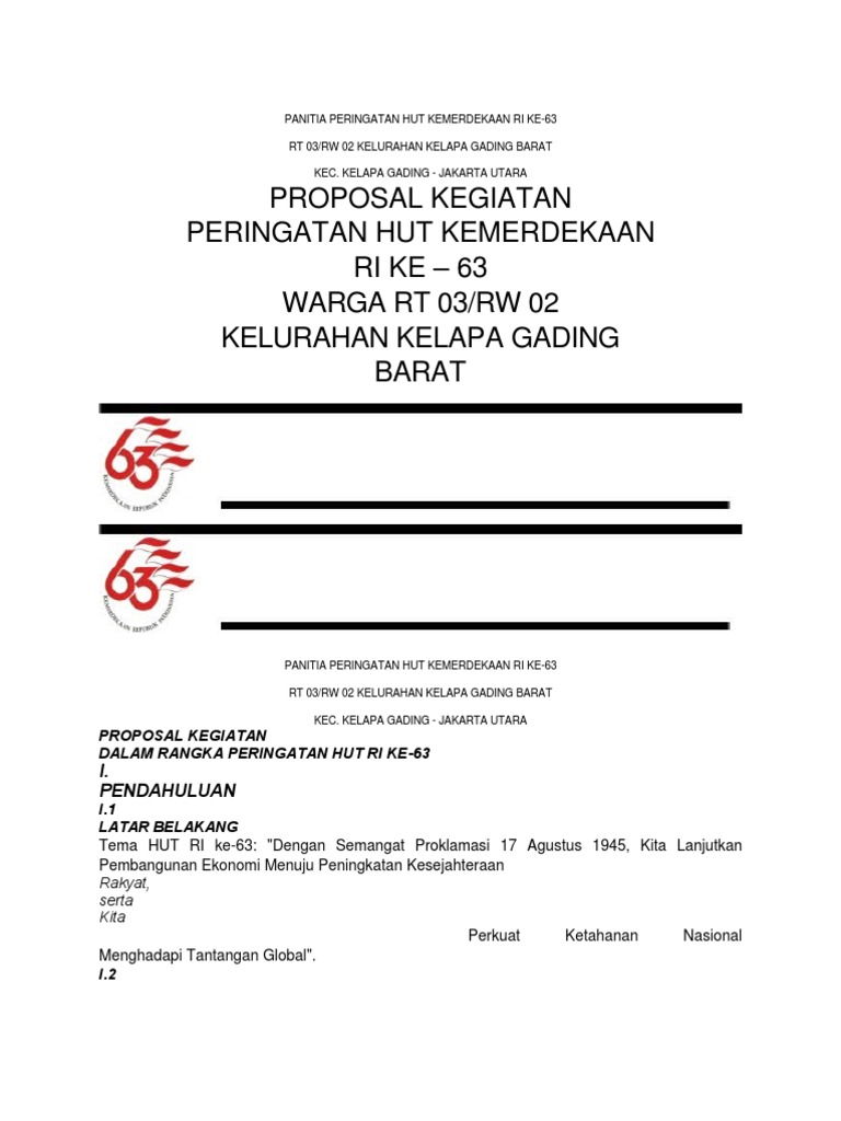 Yups kurang lebih seperti itulah contoh proposal 17 agustus yang bisa sobat tiru untuk tingkat rt. Latar belakang 17 agustus merupakan hari bersejarah bangsa indonesia.