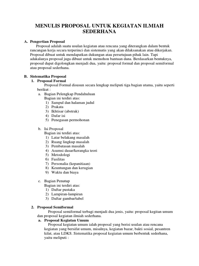 Contoh proposal semi formal. Proposal jenis ini biasanya di gunakan untuk tujuan riset dan penelitian penulisan skripsi dan disertai. Bentuk proposal yang ada yaitu bermacam macam seperti formal semi formal dan non formal. Proposal non formal biasanya hampir sama dengan proposal semi formal dan disampaikan dalam bentuk surat atau memorandum. Contoh karya ilmiah semi formal. Pengertian contoh proposal menurut wikipedia pengertian proposal adalah suatu perencanaan yang tersistematis dalam bentuk rancangan kerja kbbi tahun 2002 perencanaan yang sistematis teliti dan sangat matang yang biasanya dibuat oleh seorang peneliti sebelum melakukan penelitiannya baik itu penelitian lapangan atau di perpustakaan. Berbagai alasan seperti kesibukan sedikitnya waktu tidak adanya biaya.