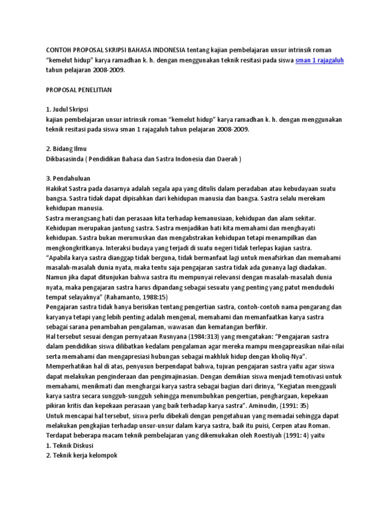 Proposal skripsi ini dibuat untuk memenuhi tugas mata kuliah menulis lanjut. Sebelum anda mengerjakan skripsi anda terlebih dahulu diwajibkan untuk mengirimkan sebuah proposal yang disebut juga sebagai proposal skripsi yang mana di dalam proposal tersebut biasanya berisi informasi secara singkat mengenai skripsi yang anda kerjakan. Contoh proposal penelitian bahasa indonesia. Karena sebenarnya sadar atau tidak sadar seluruh penduduk indonesia berkomunikasi dengan bahasa indonesia. Contoh judul skripsi bahasa indonesia terbaik mudah dikerjakan skripsi pendidikan bahasa indonesia adalah skripsi yang sangat menarik buat saya. Contoh penggalan novel terjemahan.