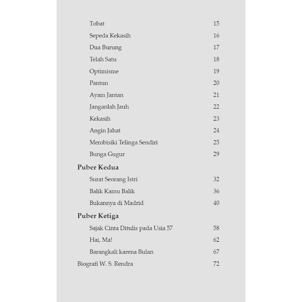 Laki laki yang lahir pada 7 november 1935 ini juga dikenal sebagai penyair legenda. Kini kita saling berpandangan saudara. Puisi terakhir ws rendra. Penulis yang dijuluki burung merak ini mulai memperlihatkan. Buku kumpulan puisi ini merupakan sebuah maha karya dari ws rendra yang belum pernah diterbitkan. Ragu ragu apa pula kita memang pernah berjumpa.