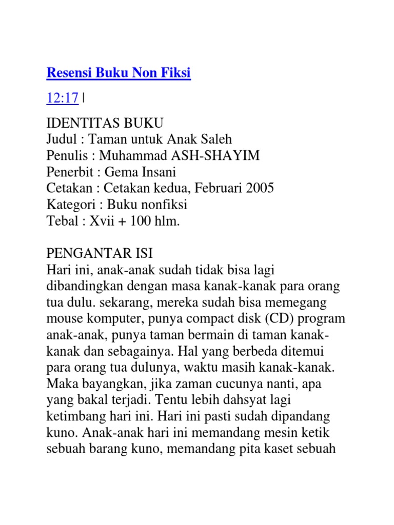Tips trik jago main rubik. Cerita non fiksi memiliki 2 bagian diantaranya sebagai berikut. Contoh contoh resensi buku contoh resensi buku non fiksi buku 1 wwwyuksinauid. Archive for the ringkasan buku non fiksi category. Contoh resensi buku non fiksi kata resensi berasal dari bahasa belanda resentie dan diterjemahkan juga ke dalam bahasa latin recensio yang memiliki arti mengulas kembali. Di dalam terjemahannya di kamus kbbi resensi memiliki arti sebuah ulasan buku.