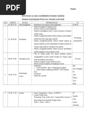 Contoh rundown acara gathering. Family gathering lembang adalah salah satu kegiatan rutinitas yang biasanya menjadi program tahunan dari setiap perusahaan. Academiaedu is a platform for academics to share research papers. Sebagai pertimbangan berikut acara bayangan sebagai pertimbangan kegiatan outing gathering outbound di lembang bandung ini. Malam puncak family fun day cv. Rajaya rekayasa pangandaran 28 29 juni 2013 jumat 29 juni 2013 jam 1830 1840 1850 2000 2020 2050 2120 2150 2220 2240 2300 2330 2350 1840 1850 2000 2020 2050 2120 2150 2220 2240 2300 2330 2350 0000 durasi 10 10 70 20 30 30 30 30 20 20 30 20 10 kegiatan sepatah kata dari pihak manajemen sepatah kata dari perwakilan. Ghathering villa istana bunga lembang.