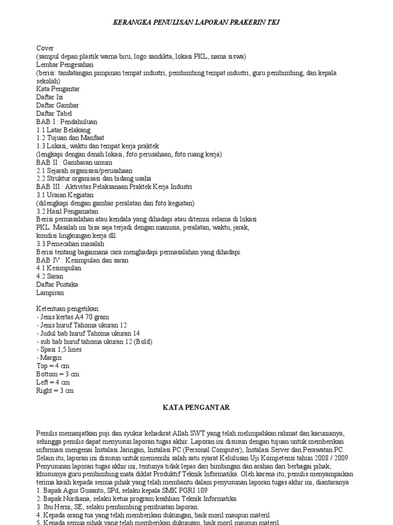 Contoh saran laporan prakerin pkl contoh saran laporan prakerin pkl jika saat ini kawan kawan sedang menyusun laporan prakerin praktik kerja industri pastinya didalam sebuah laporan prakerin terdapat yang namanya saran baik itu saran untuk pihak sekolah maupun saran untuk pihak industri nah berikut ini. Sebelumnya saya akan memberikan sedikit informasi kepada anda karena artikel pada kategori prakerin.