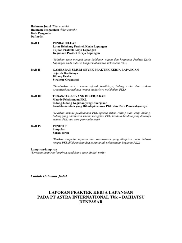 2 Contoh Laporan Pkl Atau Prakerin Yang Benar Sesuai Eyd