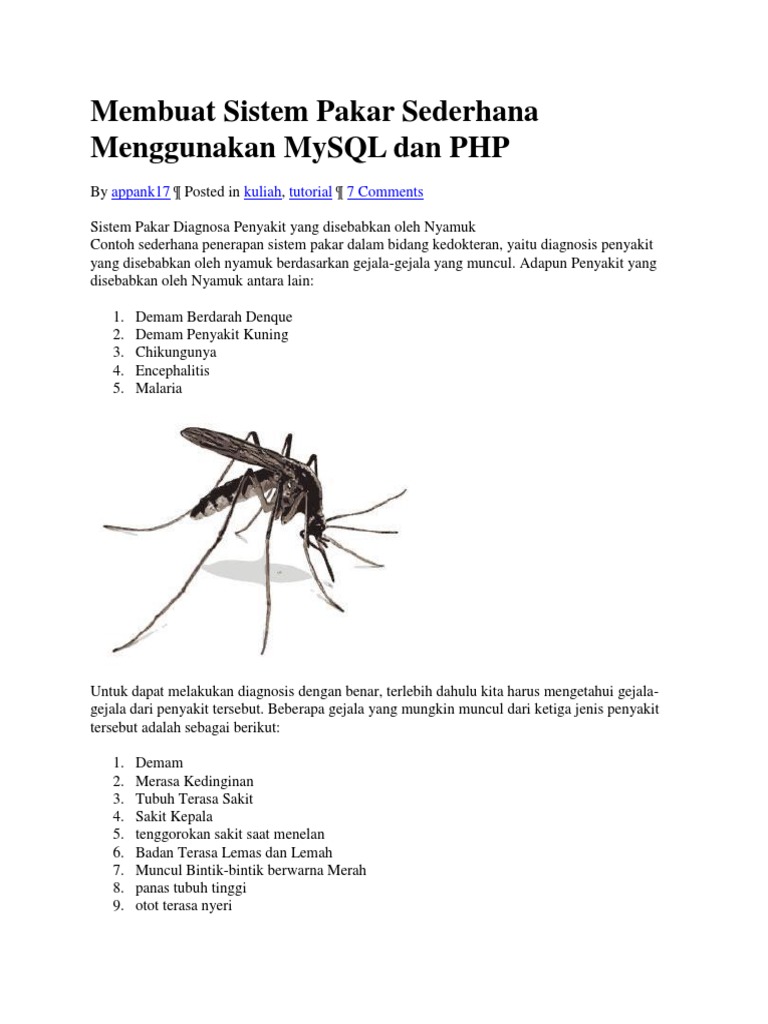 Pdf Praktikum Sistem Pakar Diagnosa Penyakit Oleh Nyamuk
