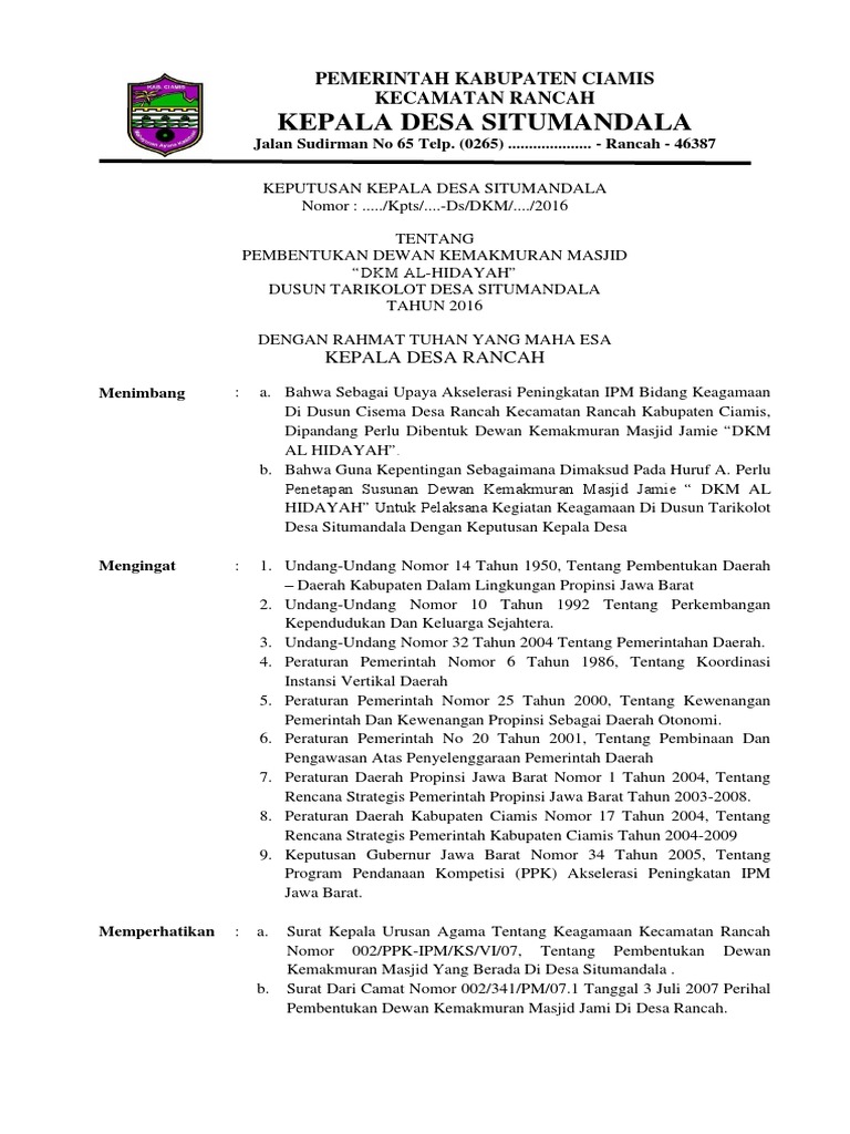 Isi sk guru ngaji dari desa. Keputusan kepala desa karangrena kecamatan maos kabupaten cilacap tentang pengesahan dan pengukuhan susunan tamir masjid nurul huda karangrena. Sk kepala desa tentang takmir masjid.