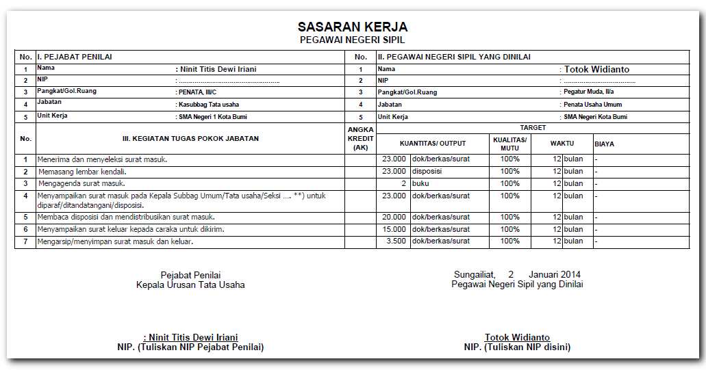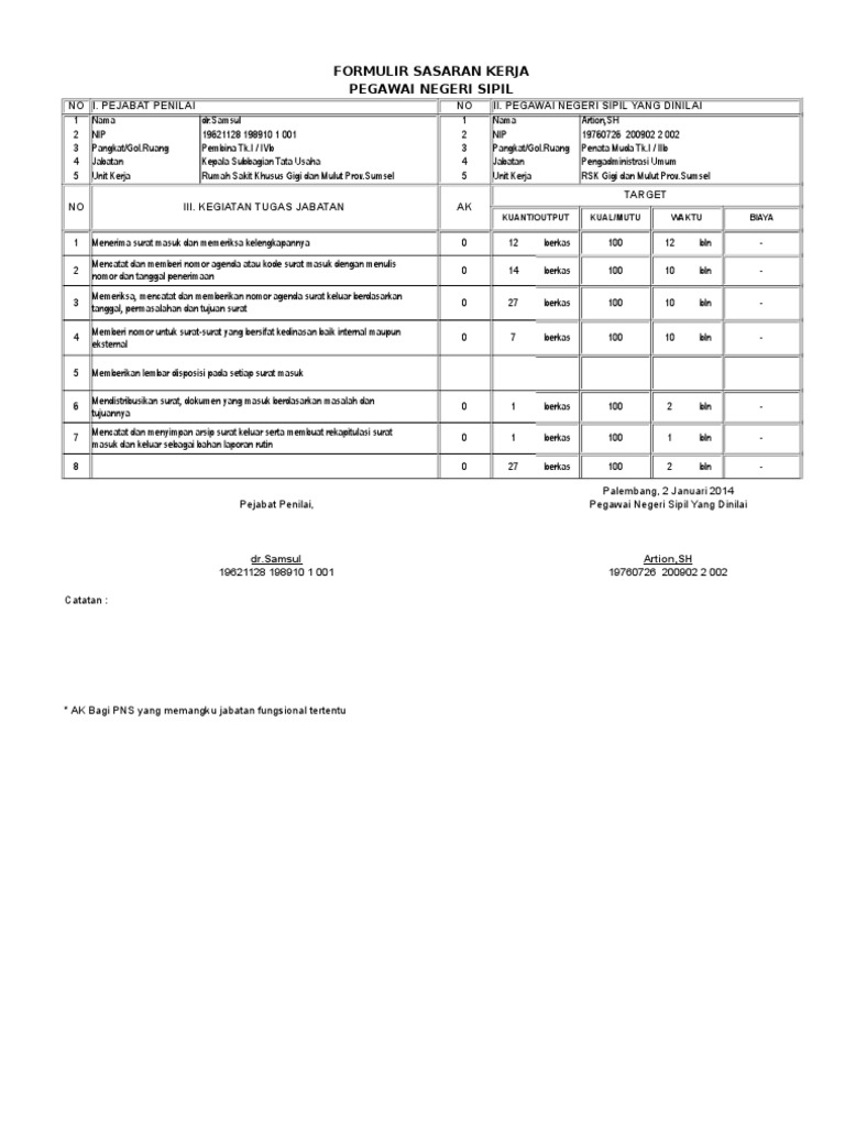 Pembuatan sasaran kerja pegawai skp wajib bagi setiap pegawai negeri sipil pns hal ini dijelaskan pada perka bkn nomor 1 tahun 2013 oleh karena itu melalui kesempatan ini kami mencoba memberikan contohnya yang mana pada pembahasan ini kami khususkan pada contoh sasaran kerja pegawai skp tenaga fungsional umum kesehatan. Uraian tugas jfu pengadministrasi umum adalah 1.