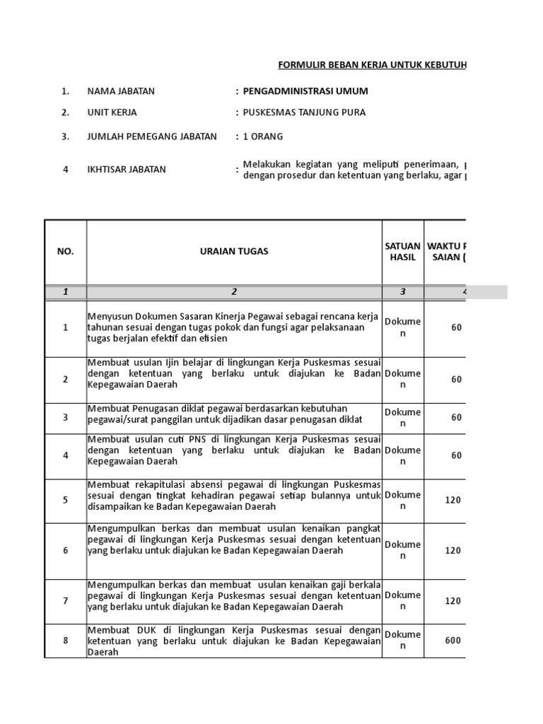 Sekretaris kasubag umum dan kepegawaian pengadministrasi umum 1. Jabatan pengadministrasi umum adalah sebuah jabatan fungsional yang berada di bawah kepala sub bagian umum dan kepegawaian baik itu di kecamatan maupun di perangkat daerah lainnya. Dapri anas sehari hari melaksanakan tugas memilah mengagendakan dan mendistribusikan surat masuk maupun keluar di suatu organisasi sebutan jabatan untuk sdr. 1 sekretaris kasubag umum dan kepegawaian pengadministrasi umum analis jabatan 2. Lebih lanjut analisis jabatan dilaksanakan untuk menghitung kebutuhan pegawai melalui perhitungan analisis beban kerja karena dalam analisis beban kerja disebutkan uraian jabatan. Sekretariat eselon iv.