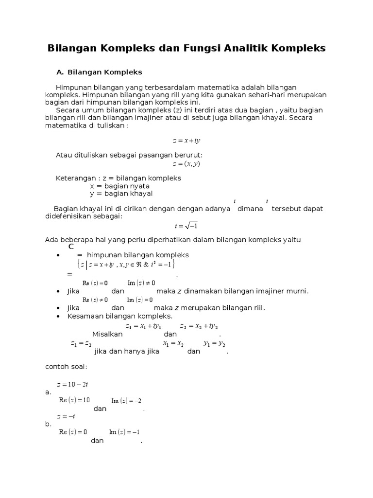 Bentuk z diubah dulu atau disederhanakan z z z z z di sini didapat bahwa x5 dan y. Bilangan riil bilangan imajiner contoh soal. Soal dan pembahasan analisis kompleks tingkat dasar bagian 2 today quote a life is like a camera. Submateri tersebut merupakan pengantar dari analisis kompleks.