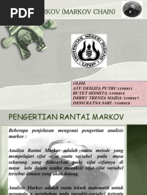 Konsep dasar analisis markov adalah state dari sistem atau state transisi sifat dari proses ini adalah apabila diketahui proses berada dalam suatu keadaan tertentu maka peluang berkembangnya proses di masa mendatang hanya tergantung pada keadaan saat ini dan tidak tergantung pada keadaan sebelumnya atau dengan kata lain rantai markov adalah. Laporan line balancing p3. Proses markov chain terdiri dari dua prosedur yaitu menyusun matriks probabilitas transisi dan kemudian menghitung kemungkinan market share di waktu yang akan datang. 15 contoh soal dan pembahasan materi peluang kejadian matematika. Konsep dasar analisis markov yaitu state dari sistem atau state transisi sifat dari proses ini adalah apabila diketahui proses berada dalam suatu keadaan tertentu maka peluang berkembangnya proses di masa mendatang hanya tergantung pada keadaan ketika ini dan tidak tergantung pada keadaan sebelumnya atau dengan kata lain rantai markov yaitu rangkaian proses bencana dimana peluang bersyarat. Berikut ini adalah contoh soal peluang.