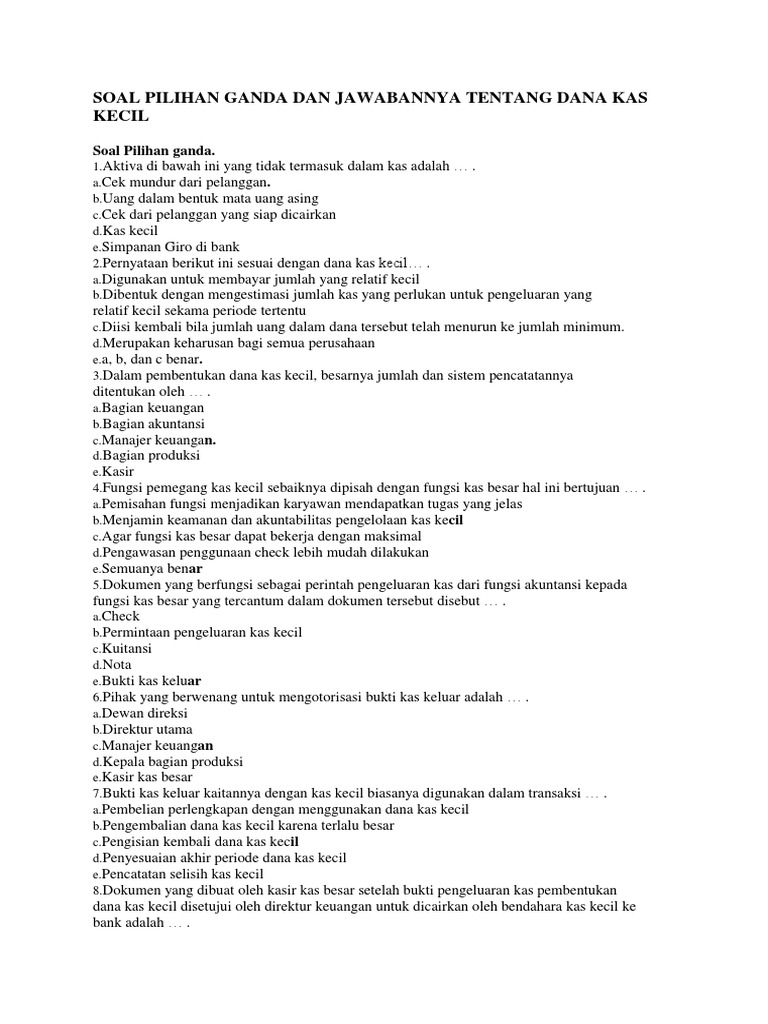 28 desember 2017. Contoh soal kas kecil.