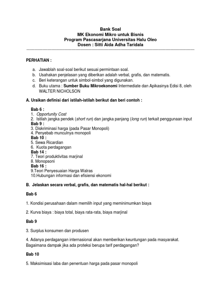 Anggaran yang tersedia untuk membeli kedua macam barang tersebut adalah rp. Bank soal asistensi mikro ekonomi 1 semester ganjil 2012 2013 asisten.