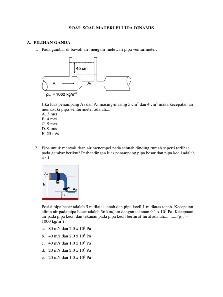 Contoh soal dan pembahasan. Contoh soal dan pembahasan tentang fluida dinamis materi fisika kelas 2 sma. Jadi jawabannya adalah waktu yang dibutuhkan agar bendungan tersebut sampai penuh yaitu 100000 second. Untuk memudahkan dalam mempelajari fluida disini dianggap steady mempunyai kecepatan yang konstan terhadap waktu tak termampatkan tidak mengalami perubahan volume tidak kental tidak turbulen tidak mengalami putaran putarandalam kehidupan sehari hari banyak sekali hal yang berkaitan. Ahmad mengisi ember yang memiliki kapasitas 20 liter dengan air dari sebuah kran seperti gambar berikut. Contoh soal fluida dinamis fluida dinamis adalah fluida bisa berupa zat cair gas yang bergerak.