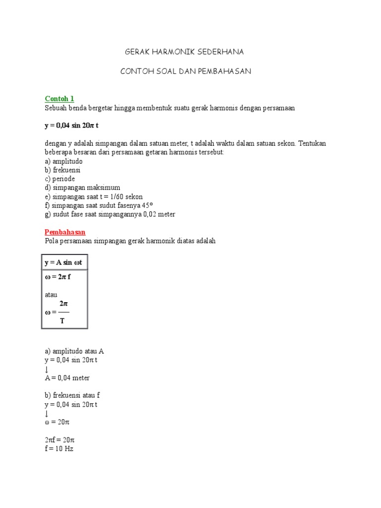 Contoh soal gerak harmonis sederhana dan pembahasannya. Gerak harmonik sederhana dalam contoh soal dan pembahasan. Gerak harmonik sederhana dan getaran. 10 soal getaran harmonik gerak harmonis sederhana pembahasan oleh anas ilham diposting pada februari 23 2020 februari 23 2020 contoh soal getaran harmonik dan jawaban beserta pembahasan simple harmonic motion gerak harmonik sederhana merupakan gerak bolak balik benda melalui suatu titik keseimbangan tertentu dengan banyaknya getaran benda dalam setiap sekon selalu konstan. Bab gerak haronik sederhana contoh soal contoh soal babgerak harmonik sederhana kelas 11 fisika kelas11 ipa soal dan pembahasan fisika. Fisika sekolah madrasah blog getaran pegas. Pilihlah jawaban yang paling tepat 1.