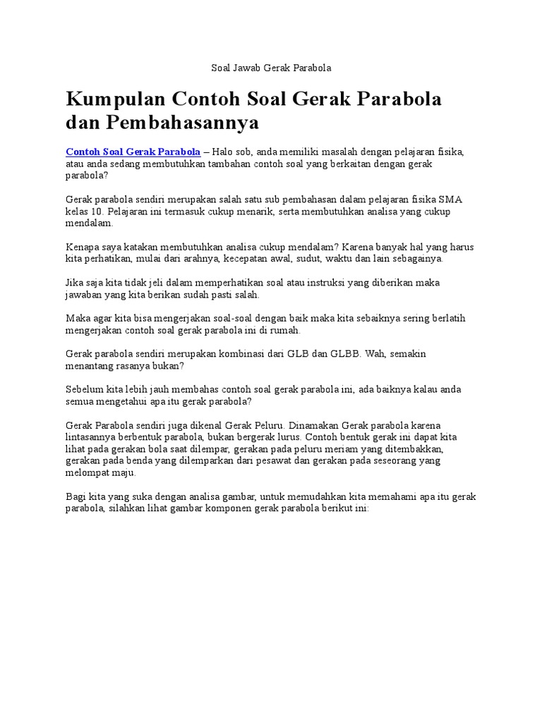 Pengertian gerak parabola jenis ciri rumus dan contoh soal. Contoh soal gerak parabola halo sob anda memiliki masalah dengan pelajaran fisika atau anda sedang membutuhkan tambahan contoh soal yang berkaitan dengan gerak parabola.