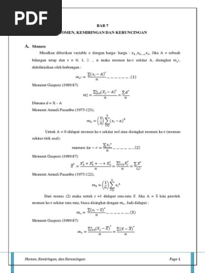 Dalam malakah ini akan dijelaskan mengenai pengertian jenis dan kurva dari suatu kemiringan dan keruncingan distribusi data tunggal maupun kelompok. Trilius septaliana kr 20102512011 2. Semoga postingan ini bermanfaat bagi pembaca dan bisa dijadikan sumber literatur untuk mengerjakan tugas. Contoh soal misalkan berat badan bayi dicatat dalam kg yang baru lahir dirumah. Momen kemiringan dan keruncingan distribusi normal distribusi t distribusi f distribusi binomial distribusi poisson uji normalitas dan homogenitas uji f dan t hipotesis dan anova makalah sebagai salah satu tugas dalam mata kuliah analisis statistik oleh. Momen kemiringan dan kurtosis momen kemiringan kurtosis.