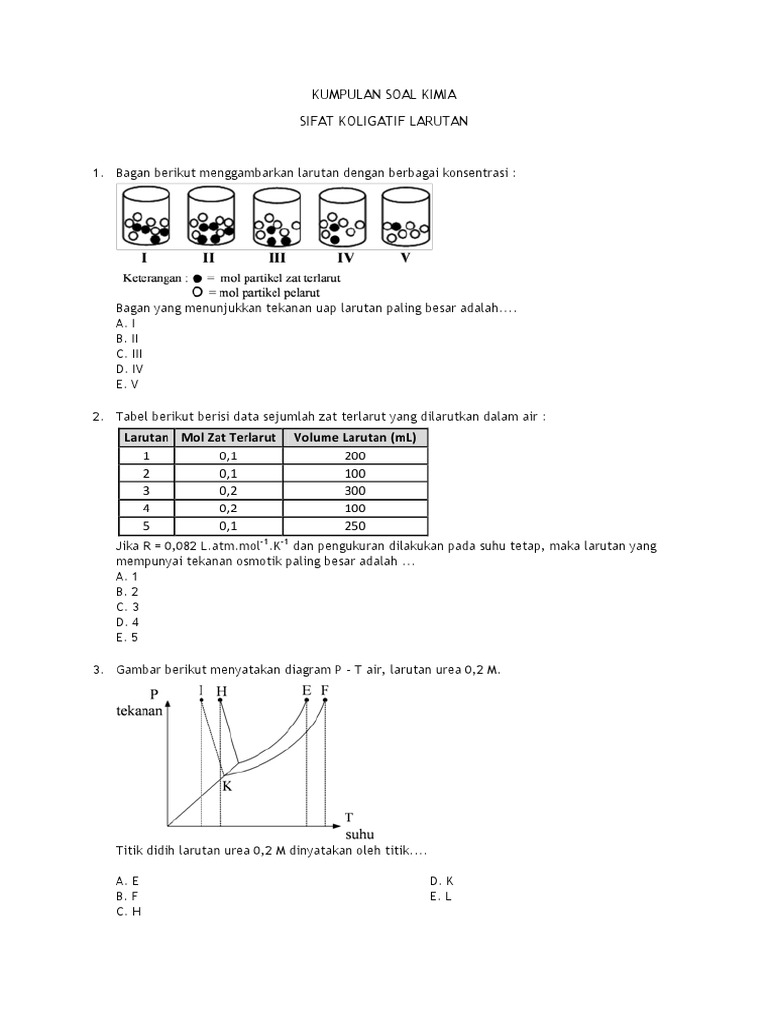 Berikut kami sajikan 10 contoh soal sifat koligatif larutan dan pembahasannya. Tentukan kenaikan titik didih larutan tsb. 100 contoh soal sifat koligatif larutan jawaban pembahasannya kelas 12. Sifat larutan yang tidak bergantung pada jenis zat terlarut tetapi bergantung pada konsentrasijumlah partikel zat terlarut. Soal no1 contoh soal pengertian sifat koligatif apa yang dimaksud dengan sifat koligatif larutan. Referensi brown theodore l.