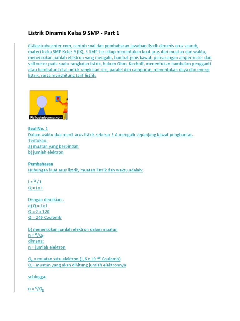 Contoh soal listrik dinamis kelas 9. Oke deh lanjut ke daftar isi yahmonggo. Oleh dosen pendidikan 2 diposting pada 02012020. Simak yah ringkasan materi dan 48 contoh soal listrik dinamis. Ini contoh soal listrik dinamis kelas 9 lengkap dengan pembahasannya. Soal listrik dinamis kelas 9 doc. Jika dalam suatu penghantar mengalir muatan listrik sebesar 6 x 102 c selama 30 s maka kuat arus listrik yang mengalir dalam penghantar itu adalah.