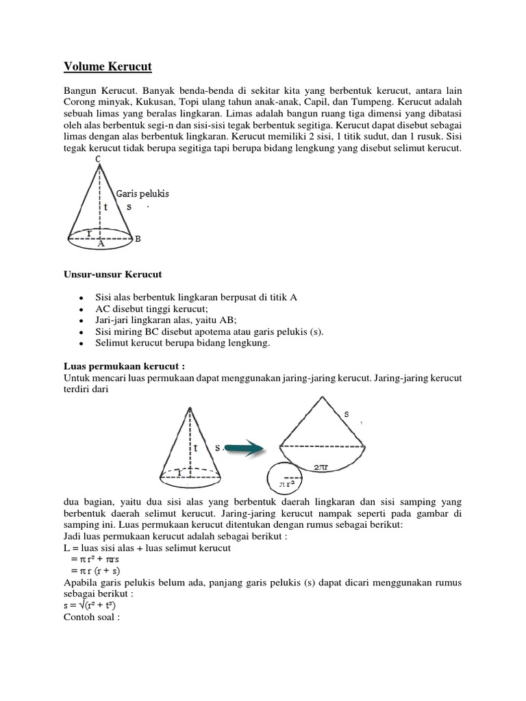 Rumus Volume Kerucut Amp Luas Permukaan Contoh Soal