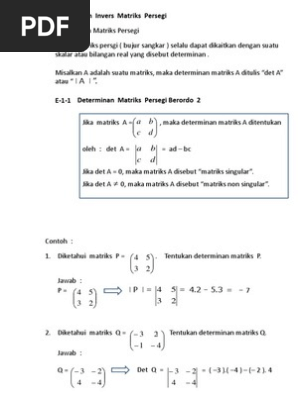 Matriks tidak bisa diinvers karena nilai determinan dari matriks tersebut adalah nol. Sebaliknya matriks yang nilai determinannya 0 maka matriks memiliki invers atau disebut matriks non singular. Berikut ini adalah beberapa kompetensi yang akan kita pelajari. Pada pembahasan ini kita akan membahas beberapa hal. Menentukan determinan matriks 3 3 dengan metode rotasi kolom. Menjelaskan pengertian matriks singular.