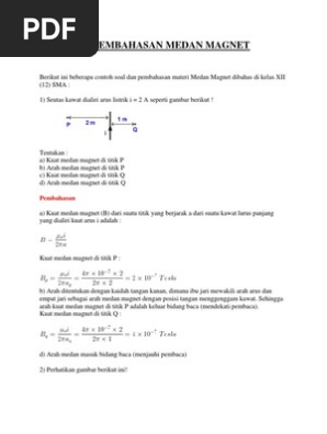 Sebuah selenoida yang panjangya 10 cm memiliki jumlah lilitan 200 lilitan. 1 10 soal medan magnet dan pembahasan 1. Tentukan fluks magnetik yang dilingkupi oleh loop. Contoh soal medan magnet dan pembahasannya berikut di bawah ini adalah contoh contoh soal menentukan besar medan magnet beserta arahnya yang akan bermanfaat bagi para pembelajar untuk memahami dan mendalami materi medan magnet. Tentukan besar dan arah induksi magnetik di titik p yang berada tepat di bawah kawat tersebut pada jarak 10 cm. Contoh soal medan magnet pada selenoida dan toroida beserta pembahasannya 1.
