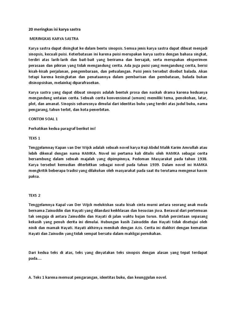 Bahasa cerpen ciri ciri teks contoh soal un dongeng drama fakta dan pendapat iklan imbuhan kalimat majemuk kamus karya ilmiah kelas ix kelas vii kelas viii kisi kisi un kurikulum 2013 majas materi sma materi soal un musikalisasi puisi novel pantun pidato poster prediksi un sastra siap ujian siap. Demikianlah yang dapat admin bagikan tentang contoh soal memaknai isi tersurat dalam karya sastra. Bagian 1 prediksi soalnya di sini soal sbmptn. Jika pada karya sastra maka informasi tersebut bisa diketahui secara langsung memalui bacaan sastra seperti novel cerpen dongeng dan lain lain. Contoh file soal uts lengkap kelas 1 6 sdmi semua mata pelajaran 20162017 berikut ini adalah kumpulan dari berbagi sumber tentang contoh soal sma memaknai isi tersurat dalam karya sastra yang bisa gunakan untuk bank soaldownloadsd dan diunduh secara gratis dengan menekan tombol download biru dibawah ini.