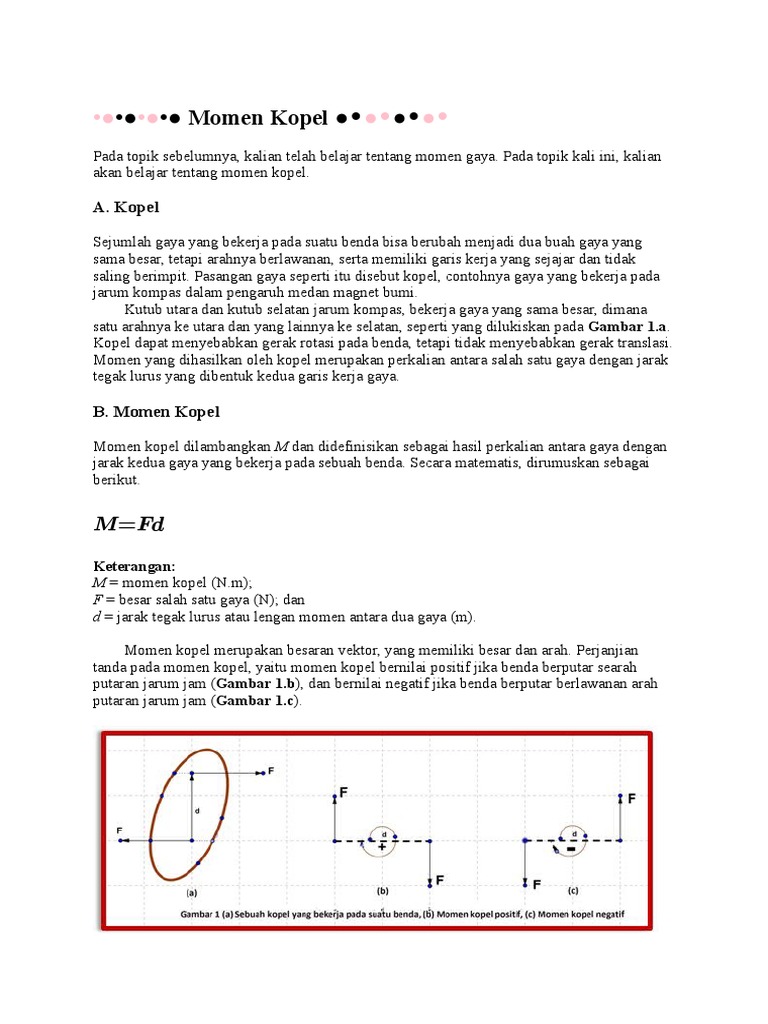 1 perhatikan gambar di bawah ini. Contoh soal momen gaya dan kopel pembahasan posted by hidayat at 1029 pm. Maka besar momen kopel gaya. Sebuah titik partikel dengan massa 20 gram melakukan gerak rotasi beraturan dengan jari jari lintasan 2 m. Momen gaya merupakan besaran yang dapat menyebabkan sebuah titik partikel berputar berotasi. Contoh soal momen gaya dan kopel pembahasan.