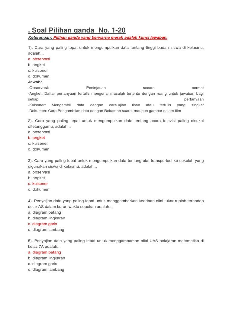 Bab 10 penyajian data nomor 1 15 pembahasan diagram di bawah ini adalah diagram yang menggambarkan banyaknya jumlah pasien yan. Kunci jawaban soal ulangan harian matematika kelas 6 sd bab 7 pengolahan data a. Contohnya mengukur tinggi badan seorang anak.