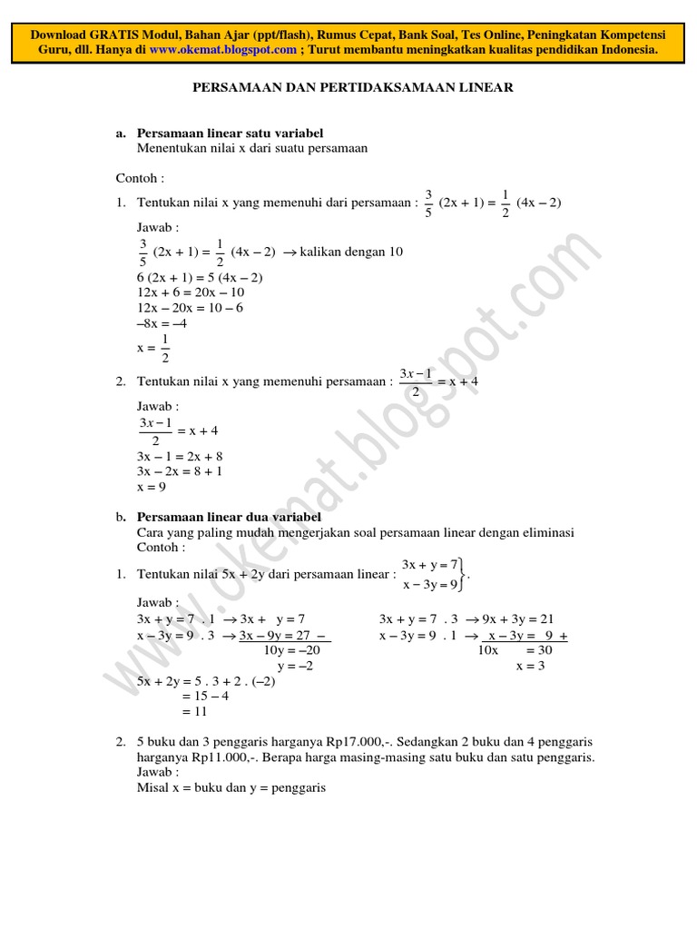 Cara Menyelesaikan Persamaan Linear Satu Variabel Detail Aljabar